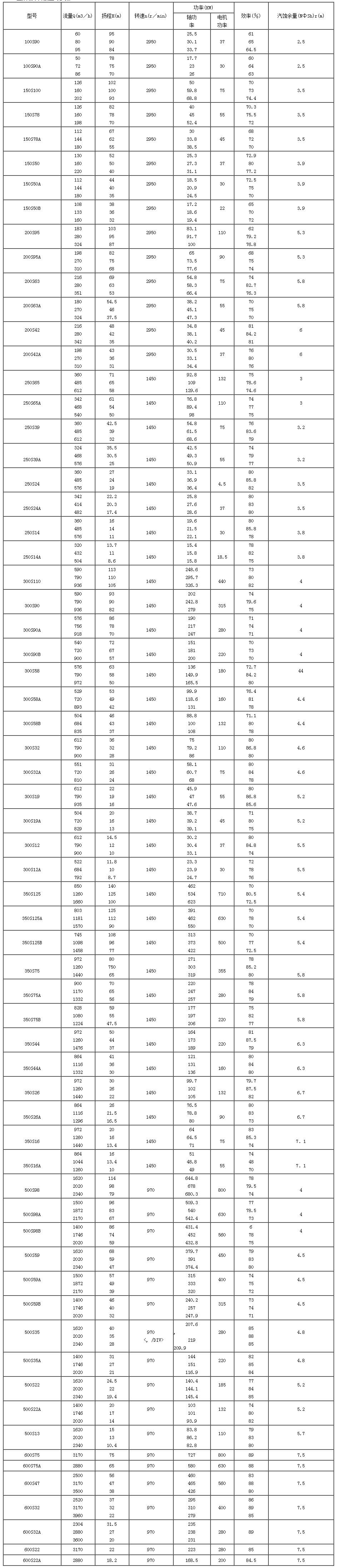 S、SH型雙吸(xī)中開泵型(xing)号參數: