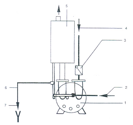 1. 2BV 真(zhēn)空泵 2. 供水管 3. 逆(ni)止閥 4. 吸氣管 5. 氣(qi)水分離器 6. 排氣(qì)管 7. 溢🥵水管