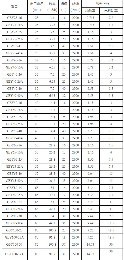 GBY濃(nóng)硫酸液下泵性(xing)能參數表